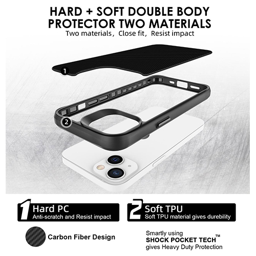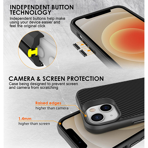 3).กันกระแทกและป้องกันการตกหล่น: การออกแบบไฮบริดที่ดูดซับแรงกระแทกของ TPU และ PC back ให้การป้องกันที่ดีสำหรับอุปกรณ์ของคุณ ขอบยกยกหน้าจอและเลนส์กล้องออกจากพื้นผิวเพื่อหลีกเลี่ยงรอยขีดข่วนและความเสียหาย
